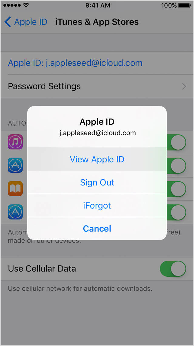 - Tap View Apple ID. You might need to sign in or use Touch ID.